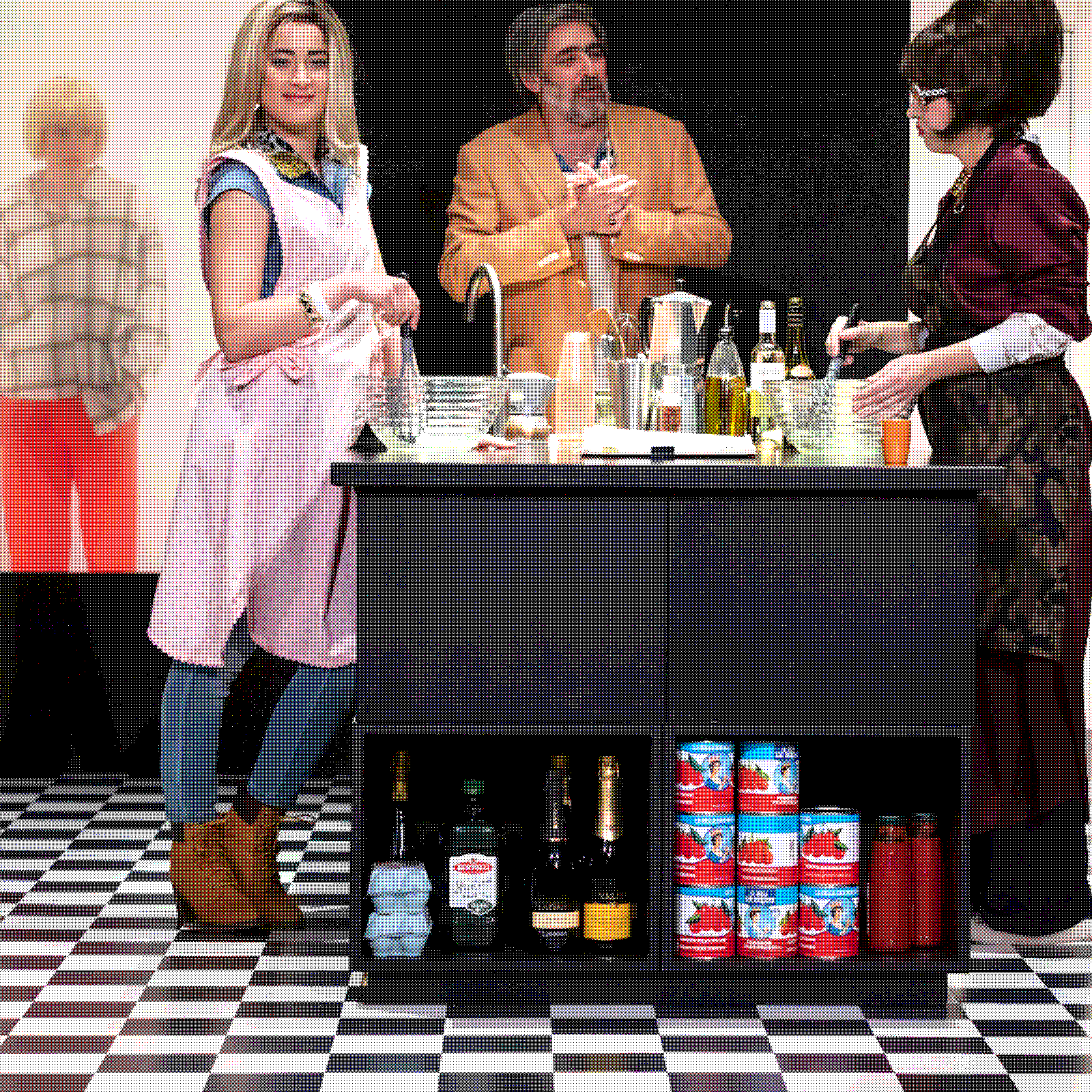 Le décor est une cuisine. Une vraie. Avec une plaque de cuisson, qui comme dans la vraie vie, ne veut parfois plus s’allumer. Avec un évier, qui comme dans la vraie vie, finit rempli de vaisselle sale. Avec des spaghetti, de l’ail, du café, des fruits de mer. Des tasses, des assiettes, des couverts. Bref, une vraie cuisine. Avec du vin blanc valaisan. Comme dans la vraie vie de nous autres romandes.
